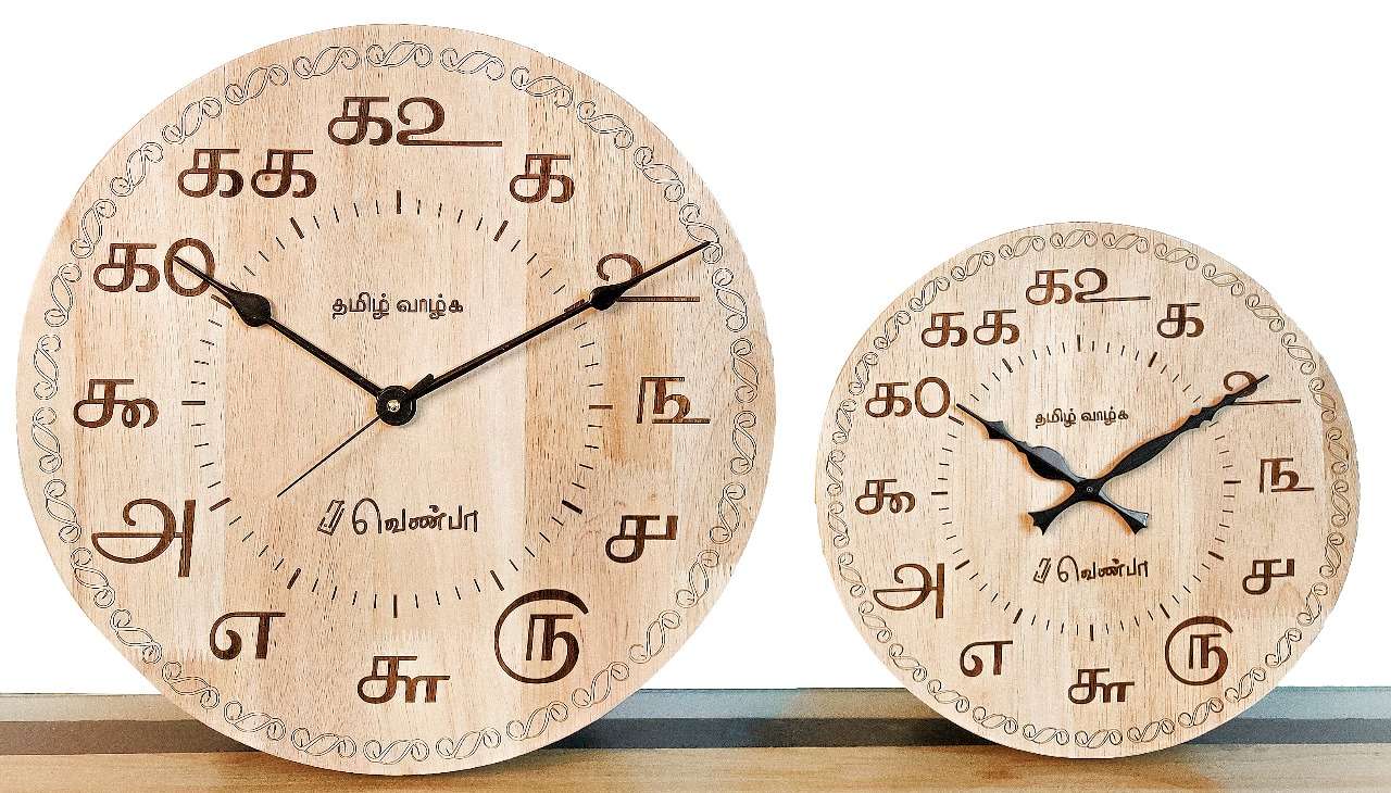 செம்மொழியான தமிழ் மொழியின் எண்கள் பதிக்கப்பட்ட  தனித்துவமான தமிழ்  நேரங்காட்டி.